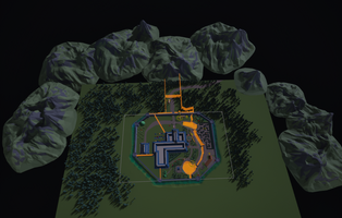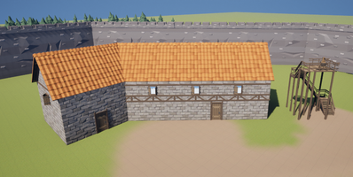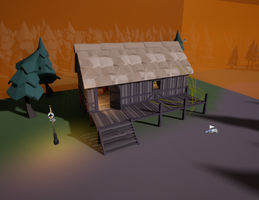 I added a shack with usable items to serve as a small tutorial zone. The starting area was very ugly and clearly showed where the landscape ended. I veered the painted dirt path off to the side and planted more trees to hide its abrupt end. I also added mountains in the distance to make things look less isolated. It looked much better, but I had to create a V2 of EACH level variant to migrate these changes together.