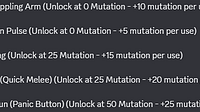 Aden This sprint I was in charge of several smaller tasks such as planning how the player gets access to new mutations, how progressing through levels works, planning the control scheme for both keybo...