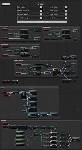 This week I added an options menu that allowed the player to adjust graphic settings, fixed some issues with the echo lure, and made the base for an interactable notes system that will get fleshed out in the future. Next up I might try to add volume and music settings to the options menu and fix an issue that some playtesters noted with the biolock door’s widget not always triggering properly.