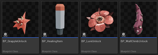 I used this week to begin working with the save system and implementing meshes and additional tweaks to the ability unlock blueprints. I also swapped some button inputs to match our planned keyboard layout.