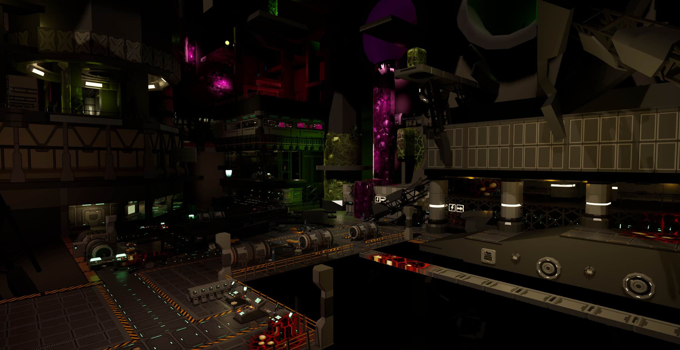 - Adding and properly placing Post Process Volumes in various areas throughout the main map level.