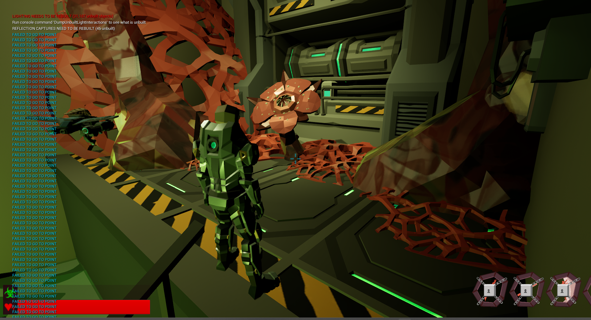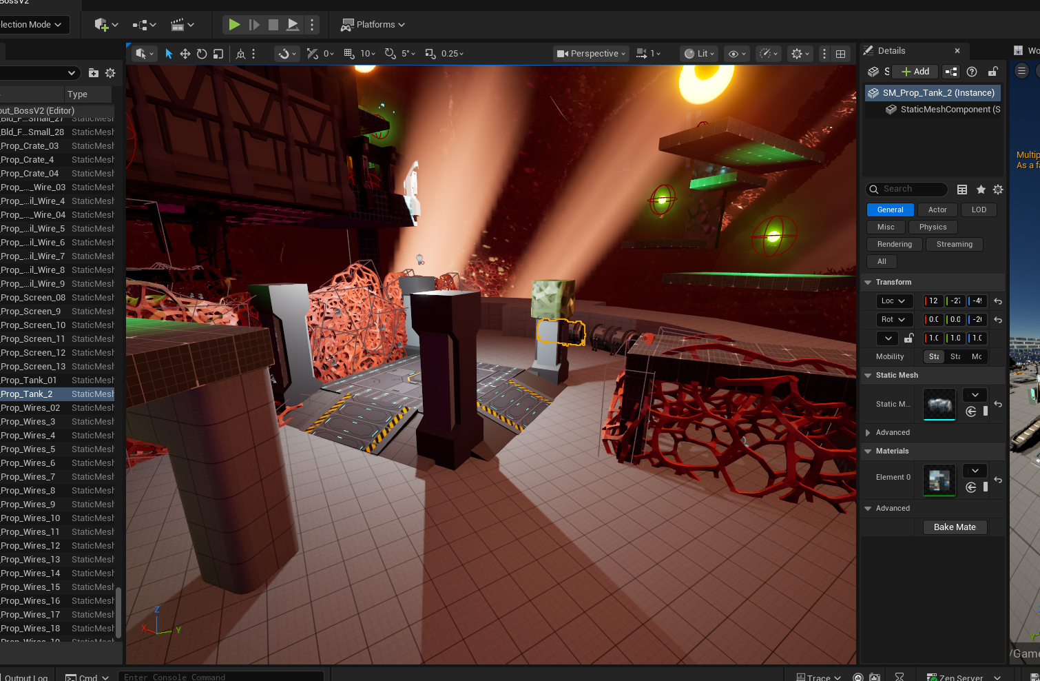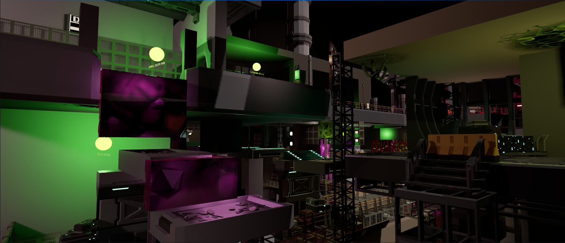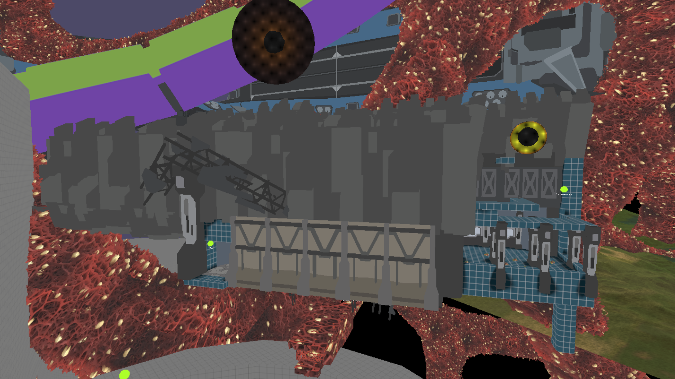 The art team has completed the art pass of the main level of Parasite Zero.  We are now working on the set dressing pass of the boss arena! Once we are finished with this, we will do a quick lighting pass and then go back and forth between the main and boss level to do a VFX pass—as well as fixing any set dressing issues found while playtesting.