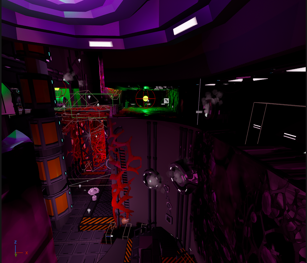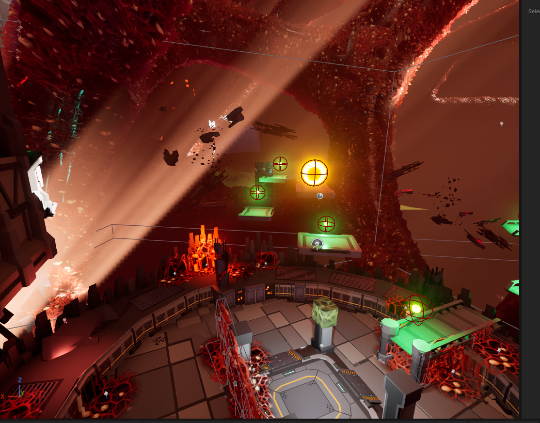 I think the god rays and rubble floating really adds to the feel of being in space with random areas losing gravity on the ship as the mutation over takes everything.